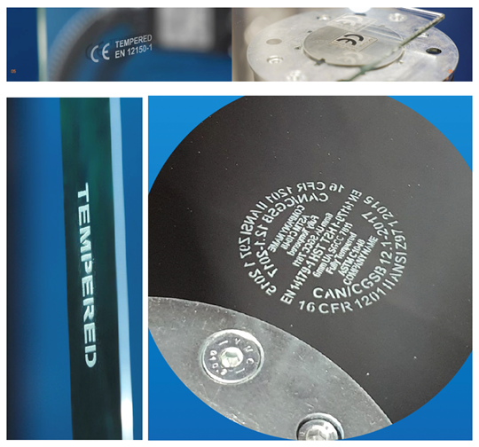 Easymarker EV30 and Easymarker UP30 enable to imprint on the surface of glass and mirrors a mark with a diameter of up to 30 mm in a totally automatic way, ensuring the same quality and sharpness of marking as the standard version with 25 mm diameter. This new solution was designed to respond to the needs of a leading international company in the production and processing of flat glass, which needed to imprint on the glass surface extensive information about the compliance of their products with the international standards related to material safety in the building industry (ANSI, CFR, SCGG, UNI, EN, CE, etc.).